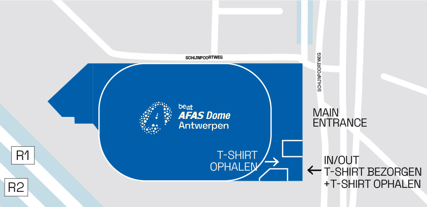 Je brengt je T-shirt of hoodie binnen in de Eat & Greet van de AFAS Dome, enkel via de ingang aan de straatkant.